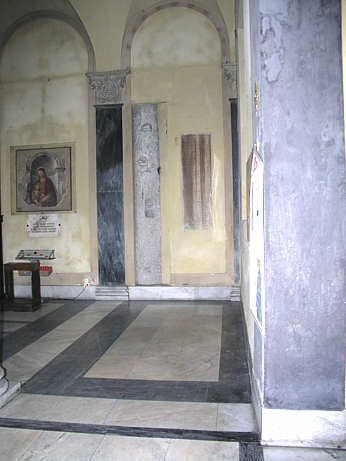 Besonders im vorderen Teil der Seitenschiffe sind die Säulen der beiden einbezogenen Tempel zu sehen.
