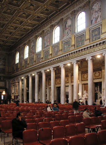 Mittelschiffwand mit dem durchgehenden Architrav über