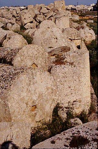 Tempel G: begonnen 550 v. Chr., unvollendet; davon die Säulentrommeln in den Cave di Cusa. 110 x 50 m; Säulen 16 m hoch, 3,4 m ø.