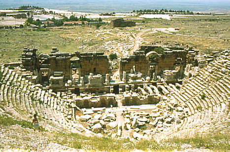 Im Hintergrund das moderne Hotel mit dem Badebecken, das durch die warmen Quellen gespeist wird