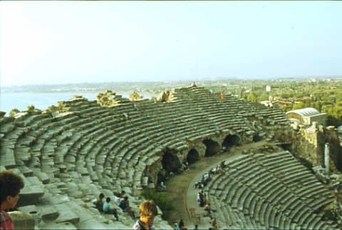 größte Ausdehnung der Stadt in der Antike markiert. Der allgemeine Niedergang der römischen Welt zog auch den Niedergang Sides nach sich. In der Mitte des 4. Jahrhunderts wurde eine neue Stadtmauer gezogen, die das Gebiet der Stadt auf die Hälfte seiner ehemaligen Größe reduzierte. Nach der Errichtung einer Diözese erlebte die Stadt im 5. und 6. Jahrhundert noch einmal eine kurze Blütezeit. |
