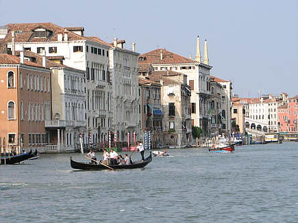 Zwischen der Accademia und der Rialtobrücke gibt es keine Überquerung des Canale Grande außer mit den Linienbooten (vaporetti). Auch die Venezianer stehen hier während der Fahrt im Boot.