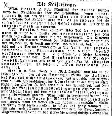 Volksstimme, 9. November 1918