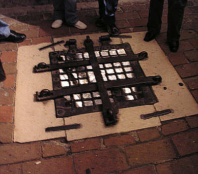 Lochgefängnis Über 3 m tiefes Loch, dessen Einstiegsluke mit einem Gitter und eisernen Riegeln geichert ist, als gefängnis von Delinquenten zwischen den Befragungen oder bis zur Vollstreckung des Urteils.