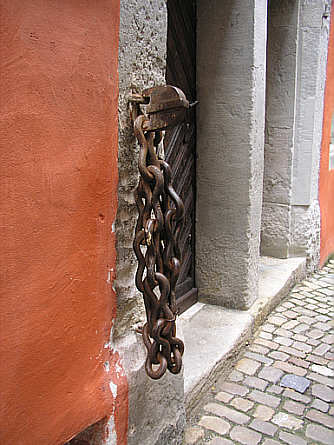 Sperrkette Mächtige Eisenkette mit Sperrschloss zum Absperren des Rathausbereichs