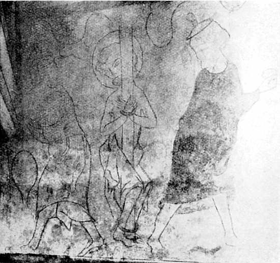 Das erste erhaltene Bild der unteren Reihe der Nordwand: die Geißelung (restauriert) Abb. aus: Schmieder, Oberschüpf, MH 1925