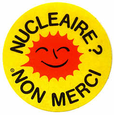 Aufkleber der Anti-Atomkraft-Bewegung: Nucleaire? Non merci