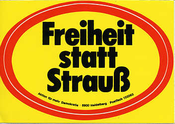 Dokument für die Linke, die F. J. Strauß als Feindbild ausmacht. Umwandlung des Wahlkampf-Slogans "Freiheit statt Sozialismus"