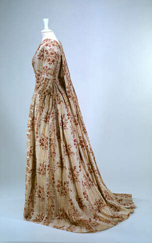 Charakteristisch für die Robe à la française ist die sog. Watteau-Falte, die auf dem Rücken von der Schulter bis zum Saum fällt und die rückwärtige Taille überdeckt.
