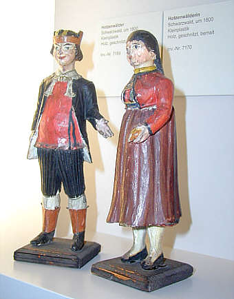 Hotzenwälder Bauernpaar, geschnitzte und bemalte Holzfiguren, um 1800