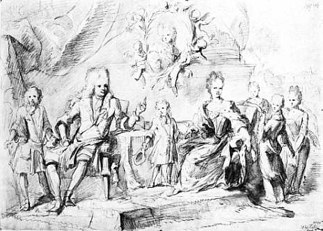 Christoph links, seine Gemahlin Augusta Maria mit den drei Töchtern