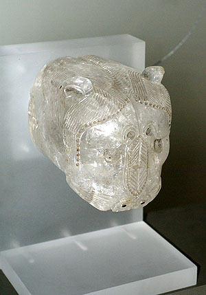 Löwenkopf als Wasserspeier. Bergkristall. Sizilien, 12. Jh. Als Heiratsgut der Markgräfin nach Rastatt gekommen, wohl 1715 dem Rastatter Piaristenkloster geschenkt