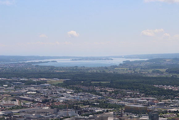 Unten: Ausblick über die Stadt Singen bis zum Bodensee