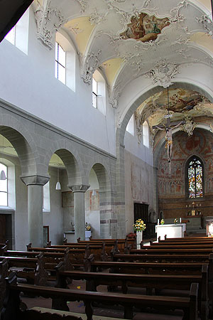 Der Innenraum wurde 1756/57 durch den Stukkateur Dominikus Wurz durchgreifend