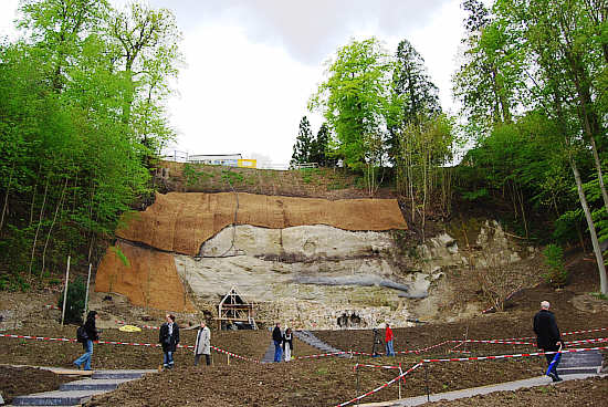 noch nackte Sandstein-Steilwand wurde gesichert, mit einem