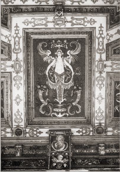 Rittersaal: Detail der Deckenschnitzereien mit Gesims und Konsolen