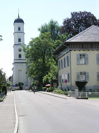 Im Vordergrund das Kavaliershaus, 1866 als zum Schloss gehörender Bau für Dienstpersonal und Gäste (Kavaliere) fertiggestellt. Im Hintergrund der einzig fertiggestellte Turm der Kirche.