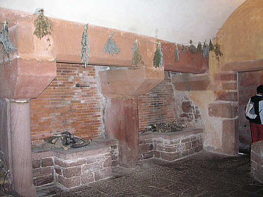 Die Küchenräume im nördlichen Palas gehen auf authentischen Befund zurück. Im Bild zwei Herdstellen unter zwei Kaminen.