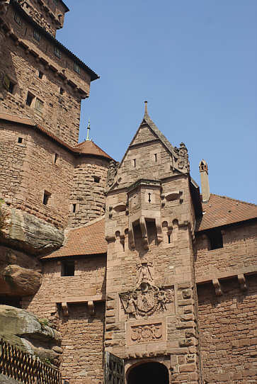 Zugang zur Vorburg mit dem Torturm und dem Wappen Wilhelms II.