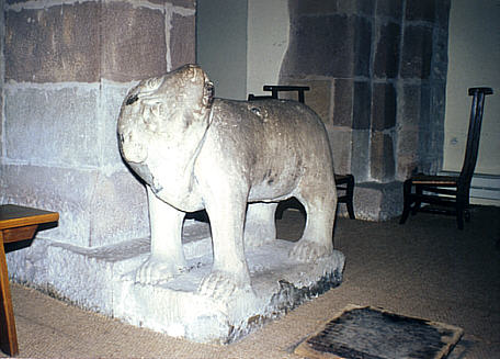 Pfeilerpaar des alten Teils. Am Pfeiler die Skulptur des Bären