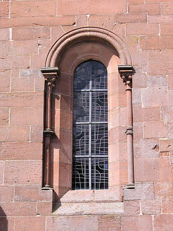 romanisches Stufenportal führt in die Prioratskirche, in die