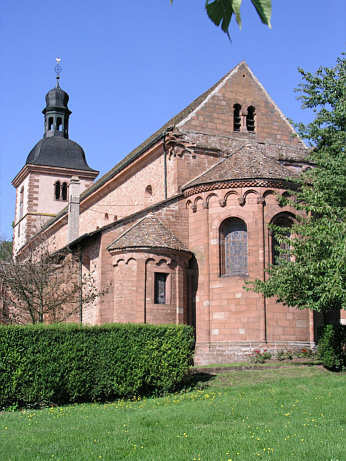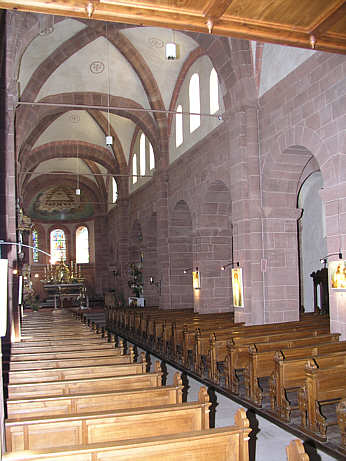 Chorfenster zwischen zwei Halbsäulen hat ein in die Mauerstufe