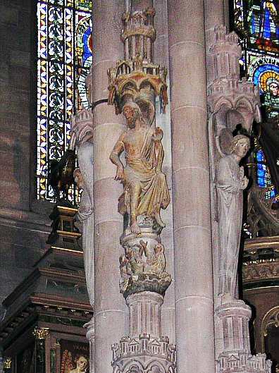hinunter: Die Figur ist für den eintretenden Gläubigen