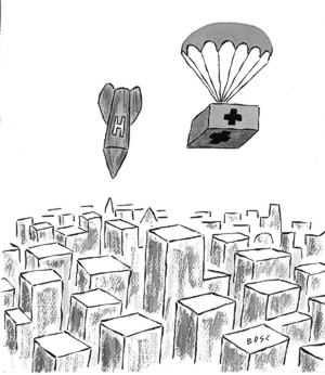in vielen Karikaturen ein desillusioniertes, ernüchtertes