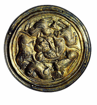 1840 fand ein Torfstecher bei Helden diese vergoldete Silberzierscheibe