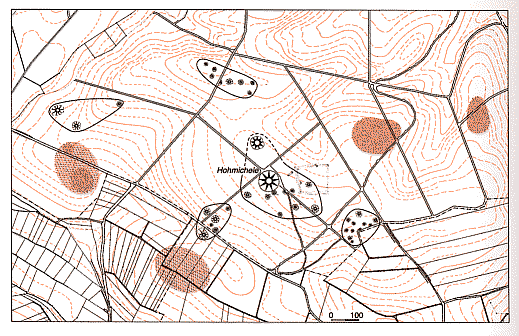Gelände wurden neue Grabhügel der (neuen?) Burgherren errichtet.