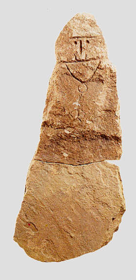 Stele in angedeuteter Menschengestalt aus Sandstein, 1,23 m hoch