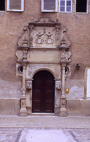 Renaissanceportal von 1592 mit den Wappen Wolfgang Dietrichs und seiner Frau Maria von Gemmingen.