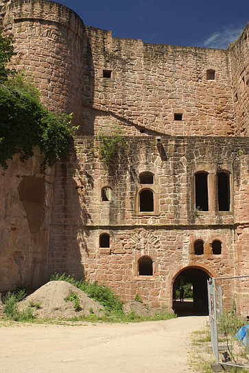 den vorderen Zugang zur Burg. Links in Bild der anstehende Fels,