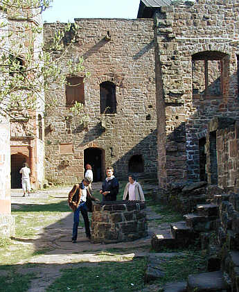 Verbindungsbau mit dem Tordurchgang von innen. Links die beiden Treppentürme des 16. Jahrhunderts, rechts die älteren Palasbauten