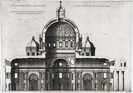 St. Peter , Michelangelos Projekt in postumer Redaktion - Längsschnitt