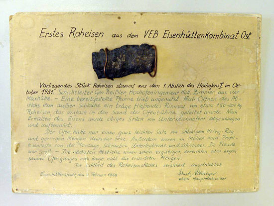 Eisenbrocken vom ersten Hochofenanstich im EKO