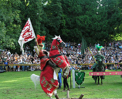 Edle Rittersleut treten mannhaft in den Ring, um die Hand der holden Maid und das Königreich zu erringen.
