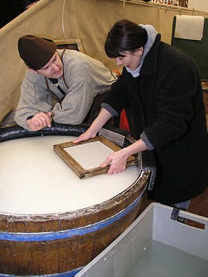 Der Papierbrei befand sich in einem großen Bottich.