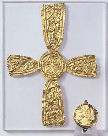 Große Landesausstellung Baden-Württemberg: Badisches Landesmuseum Karlsruhe - Schloss Karlsruhe 22.10.2005 - 26.2.2006 Goldblattkreuz ung goldener Münzfingerring