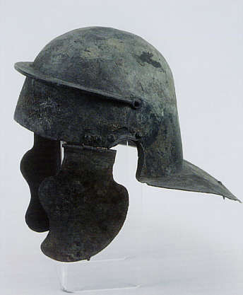 Helme dieses Typs bestehen meist aus Eisen und tragen Schmuck in Form von Treibarbeit oder Beschlägen.