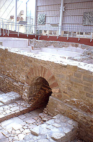 die erhaltenen Reste des Bads: Vorn Heißluftraum mit