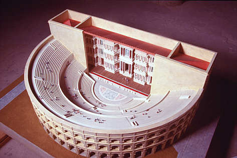 Modell des antiken Theaters mit Sitzrängen und Bühnengebäude