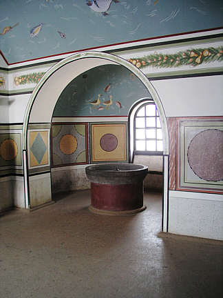 Nischenraum des Heißbads mit Brunnen.
