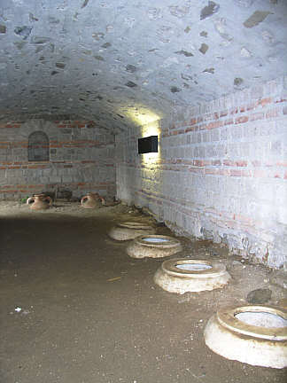 Kellerraum Zur Frischhaltung der Lebensmittel sind Krüge (vorn) und Amphoren (hinten) in den Boden eingegraben