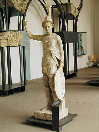 und bewaffneten Kriegsgottes mit Mantel, Kurzschwert und realistischer