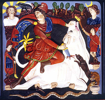 Die beiden Begleiter des Mithras, Cautes an der rechten Seite