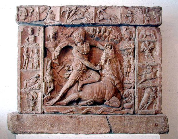 mit Szenen aus der Mithras-Legende die Umrandung.
