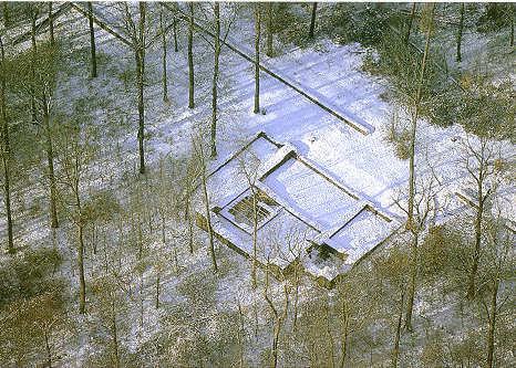 in einem ummauerten Areal von 85 x 110 m ein Hauptgebäude von