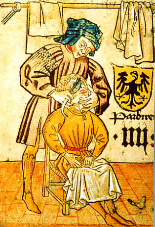 im Begriff, einen Mann mit dem Rasiermesser zu rasieren.