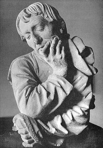 Männliche Büste Sandstein, Straßburg, 1463 Porträtbüste, vermutlich ein Selbstbildnis des Bildhauers, wahrscheinlich vom Portal der Neuen Kanzlei in Straßburg, dessen Bildprogramm sie durch die Ausarbeitung als Fensterfigur entsprechen könnte. Der abgebrochene Gegenstand in der linken Hand der Figur lässt sich als Zirkel, das Attribut des Baumeisters, deuten. |